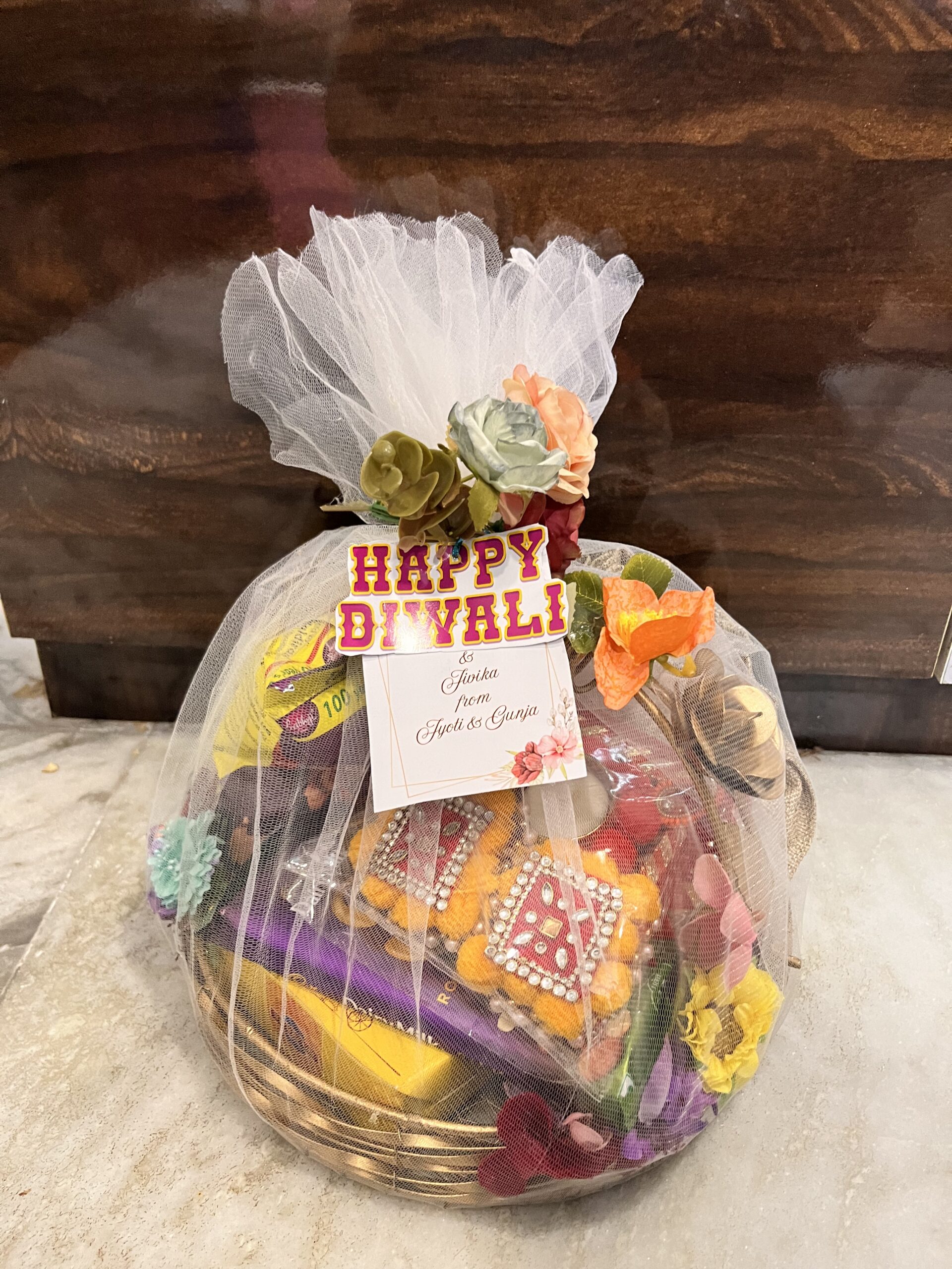 A combo of traditional mithai and savory snacks for a complete Diwali gift.