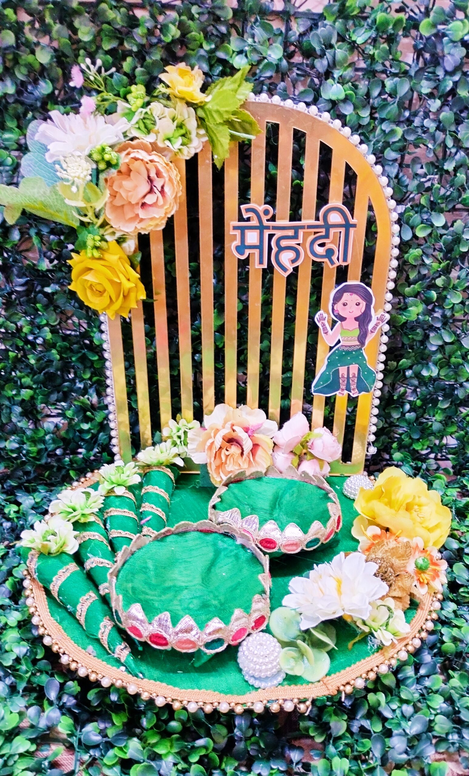 Kalakart’s Mehndi Ceremony Essentials Hamper is thoughtfully curated to enhance the pre-wedding celebration with elegance and tradition. This hamper includes vibrant floral décor, henna cones, decorative plates, and festive accents, all beautifully arranged in an elegant box. Each item is selected for quality, aesthetic appeal, and usability, ensuring a memorable gifting experience. Perfect for gifting to the bride, groom, or close family members, it adds color, joy, and festivity to Mehndi ceremonies. The premium presentation makes it a thoughtful and stylish gift, blending tradition and luxury seamlessly.